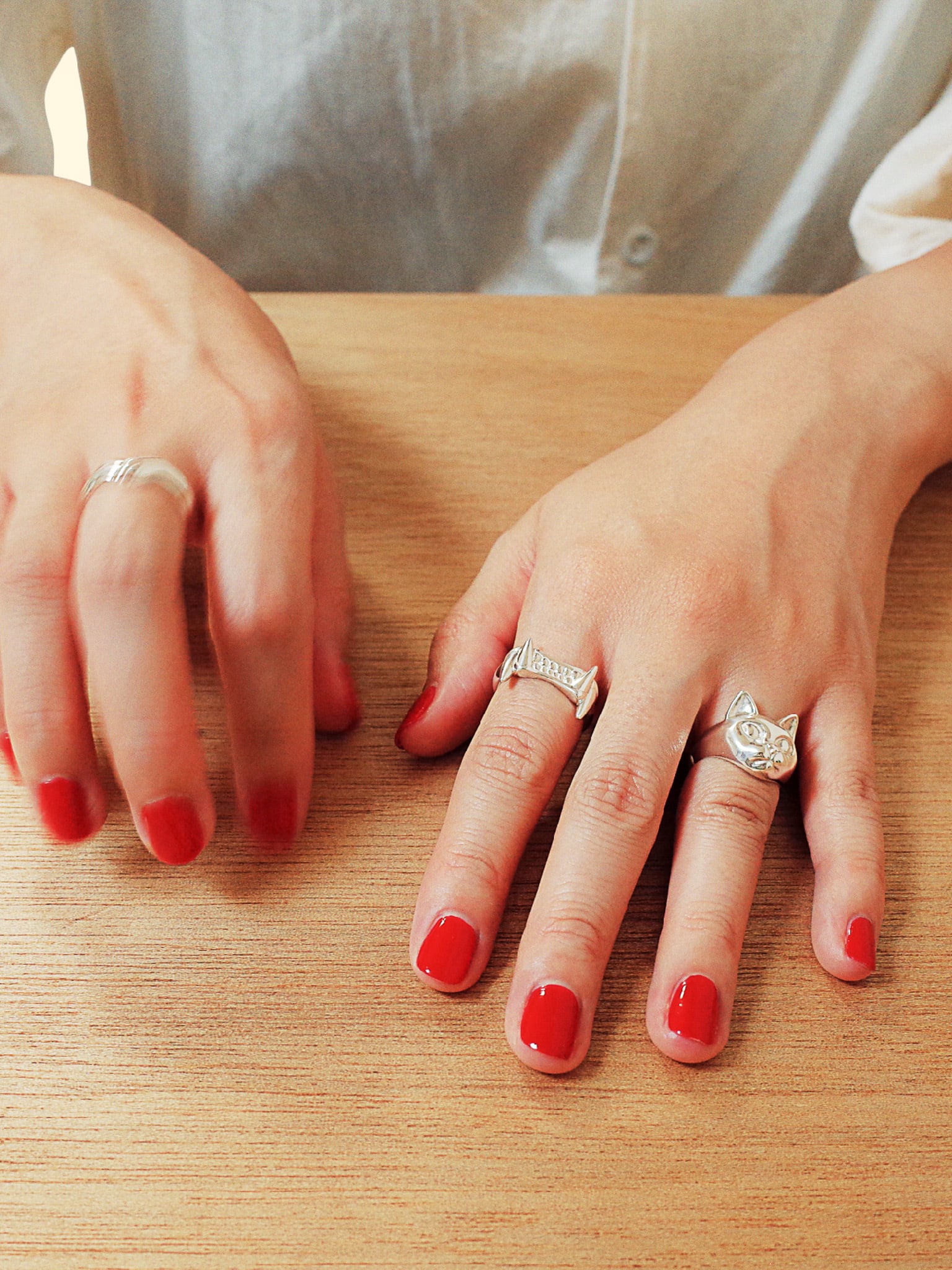 猫の歯牙をモチーフにしたリングです。